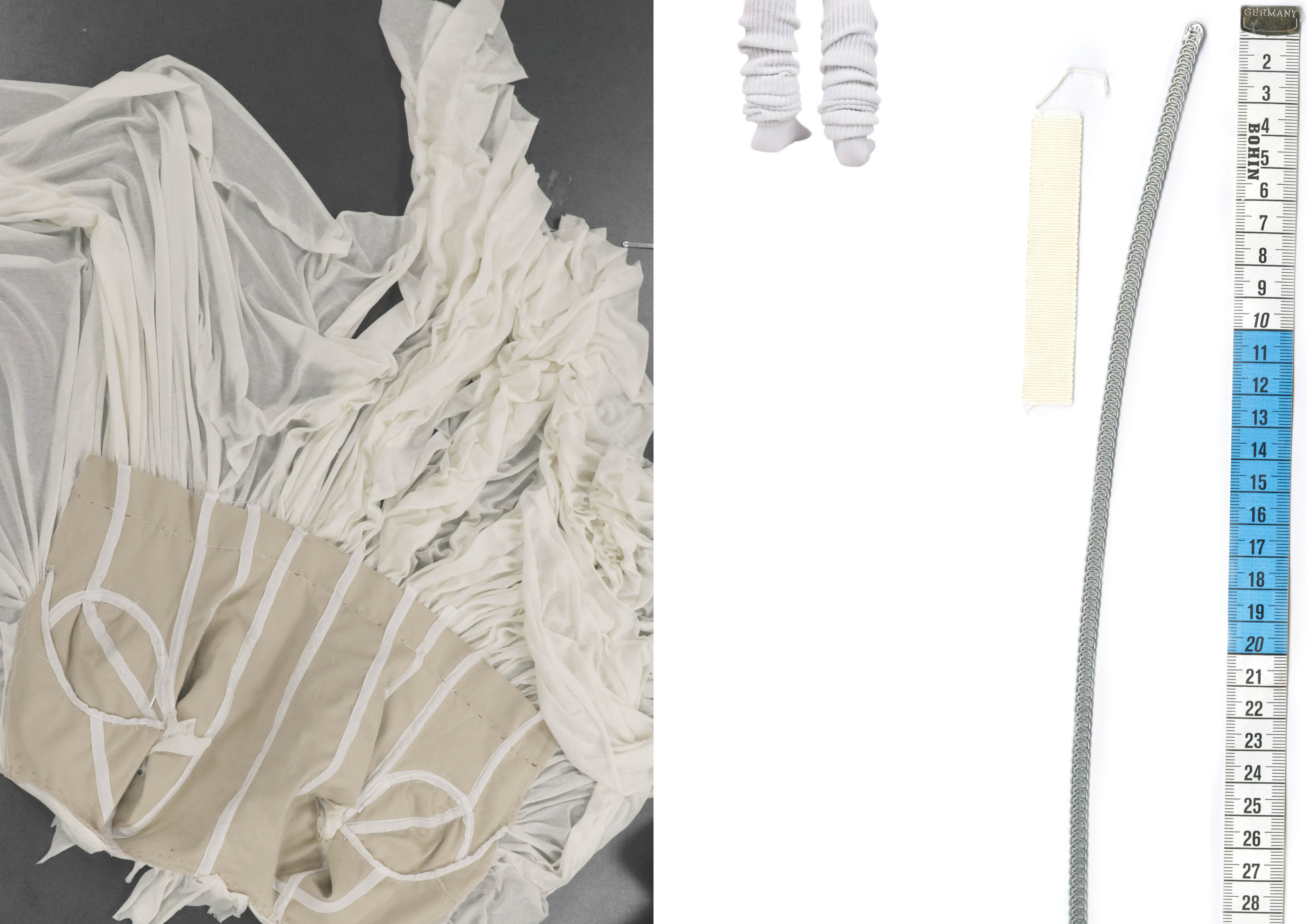 Reproduction of 1938 Maison Alix evening gown, silk jersey on canvas corset.